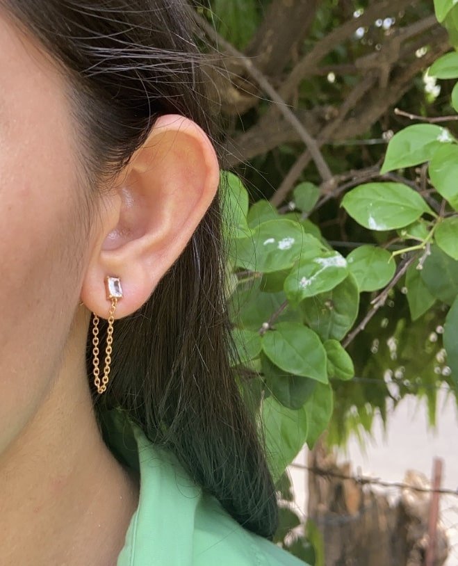 Looking to elevate your daily everyday earrings? We have got you covered with our dainty chain studs. Beautifully handcrafted in brass & CZ plated in 18kt gold.