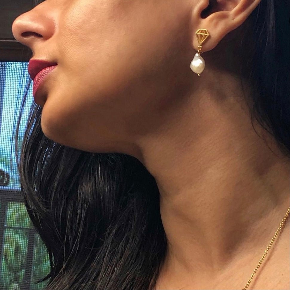 Classic freshwater baroque pearls in Myrha’s signature design. These beauties are the star of any outfit and work wonderfully with ethnic designs as well