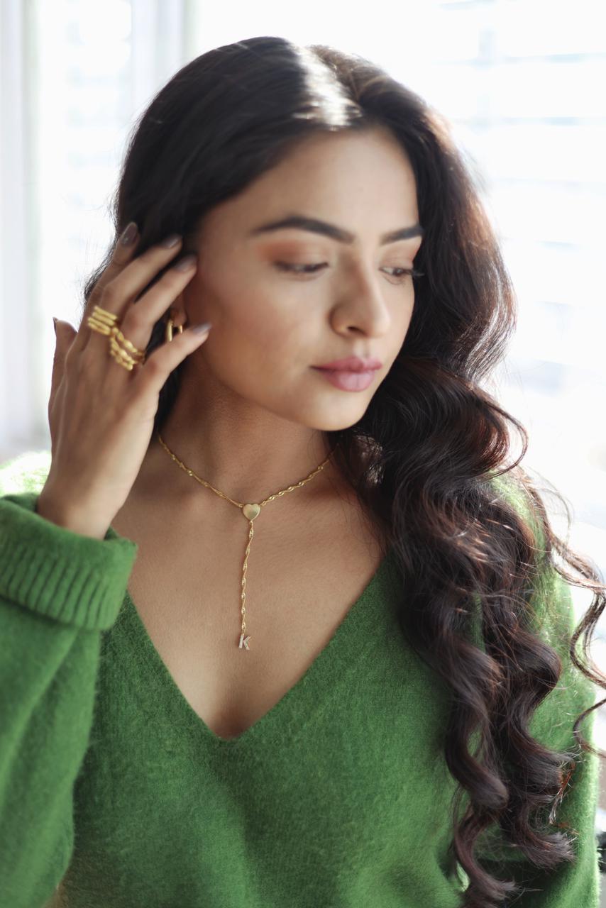 Something to love! A piece of jewellery that is always gonna stay close to your heart. Get your custom initial with a cute lil heart charm. Made in brass, plated in 18kt gold.