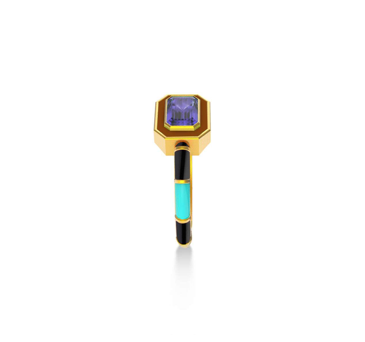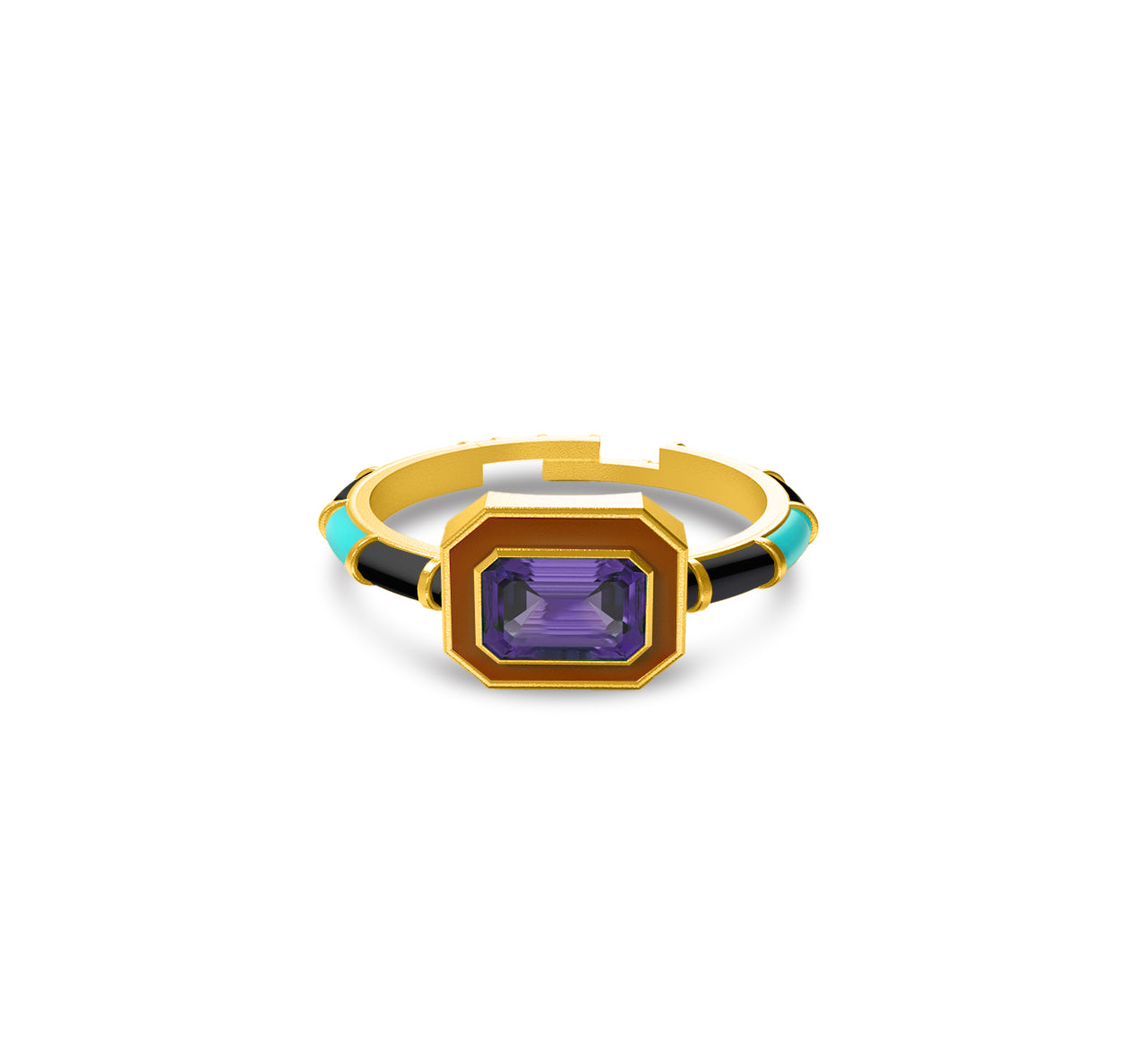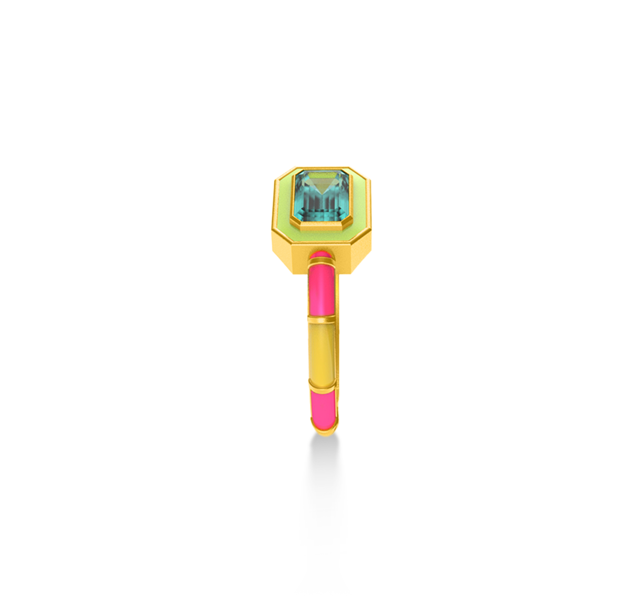 Bold, vibrant, and utterly unique, these rings are a perfect statement piece for any fashion-forward individual. Crafted from premium brass and finished with a 22kt gold plating, they exude a luxurious shine. The rings feature striking rectangular gemstones, framed by colorful enamel bands that contrast beautifully with the gold accents. Each piece is coated with a protective E-coating, ensuring lasting durability and brilliance. Perfect for stacking or wearing alone, these rings are a playful yet sophisticated addition to any jewelry collection, adding a pop of color and sparkle to any outfit. Ideal for those who love to express their individuality with their accessories.