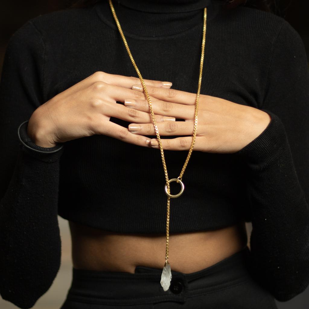Want a necklace with a twist? Eva is perfect for you. This 32" long lariat necklace is gold plated and features a beautiful natural stone. Wear it to work, on the weekend, or out on the town—it looks great either way. Any fashionista will love this stunning piece at an amazing price. Make it your own today!