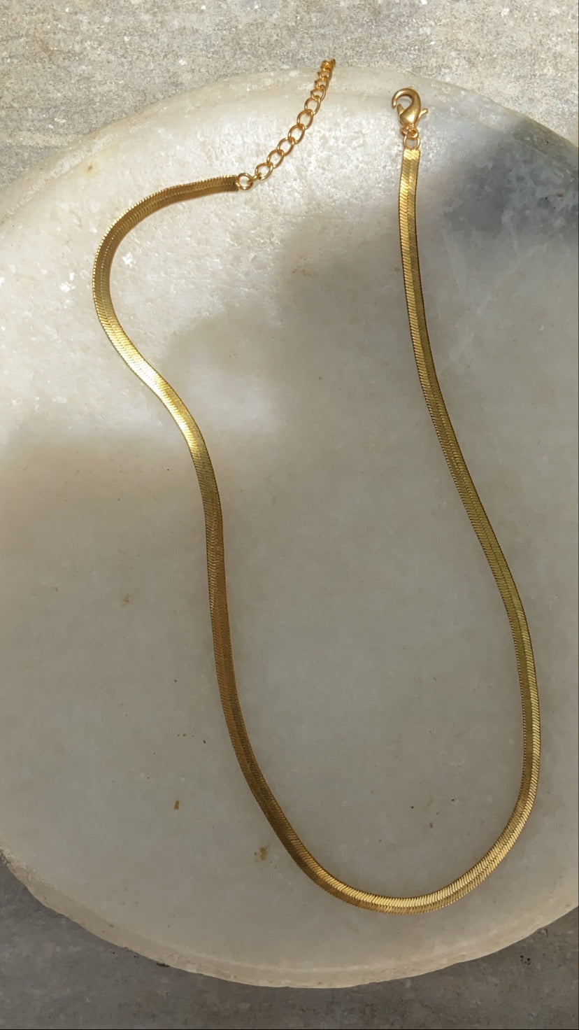 Are you constantly looking for a classic chain that you can literally wear with all your outfits? Something that you can wear solo or layer it up with other necklaces? Look no more, we've got you covered with our flat snacks chain. Its timeles, pair it up with your smart casuals, formals, literally anything. Also, don't blame us if your boyfriend, brother wears it too! this one sits on everyone beautifully.