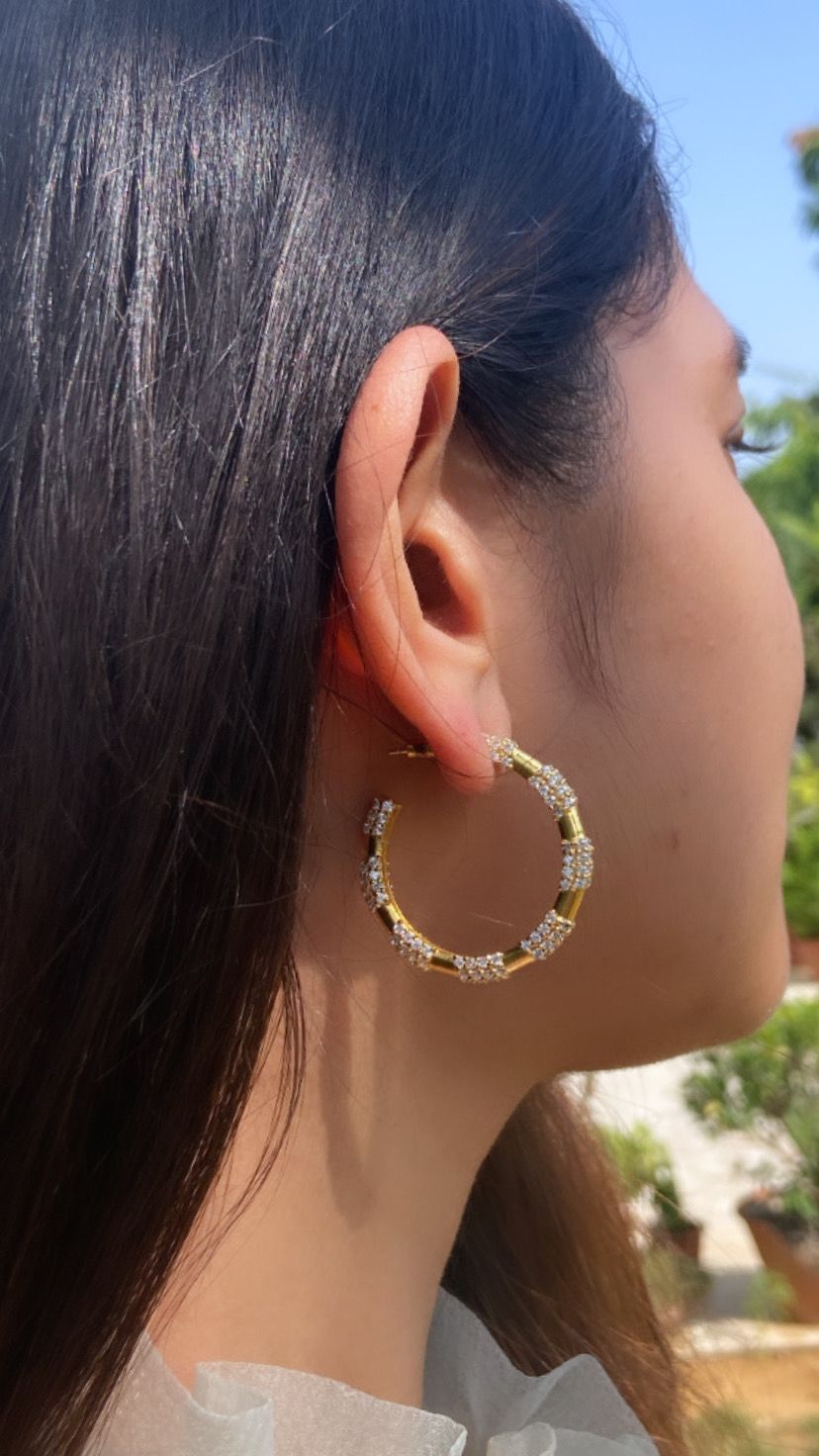 It can’t get better than this! These hoops half the perfect amount of bling and gold! A piece so versatile that would go with your festive to outfits to your glam night with the girls!