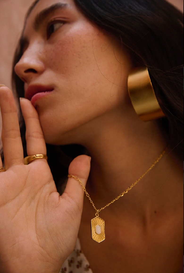 With its minimal and chic aesthetic, the Maria Necklace adds a touch of understated sophistication to any outfit. Its versatility allows you to wear it as a standalone statement piece or layer it with other necklaces for a trendy and personalized look. The choice is yours, enabling you to express your unique style effortlessly.