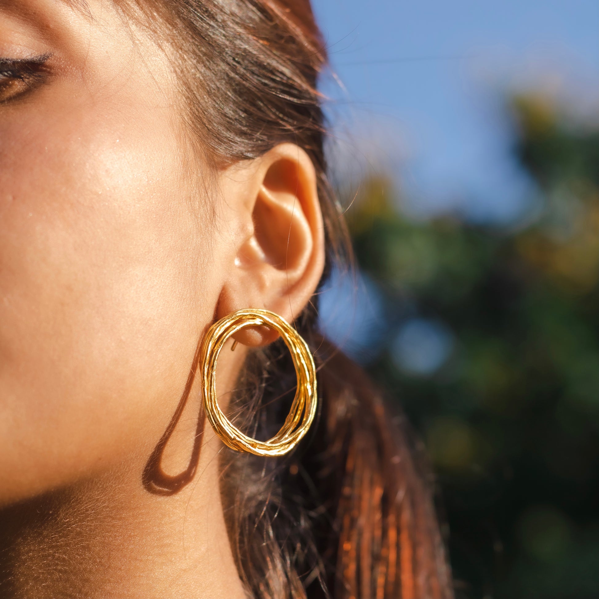 These delicate, unique earrings add a touch of fine jewellery to any outfit. Inspired by a birds nest, these 18k gold plated earrings are handcrafted with love by our artisans in Jaipur, India.