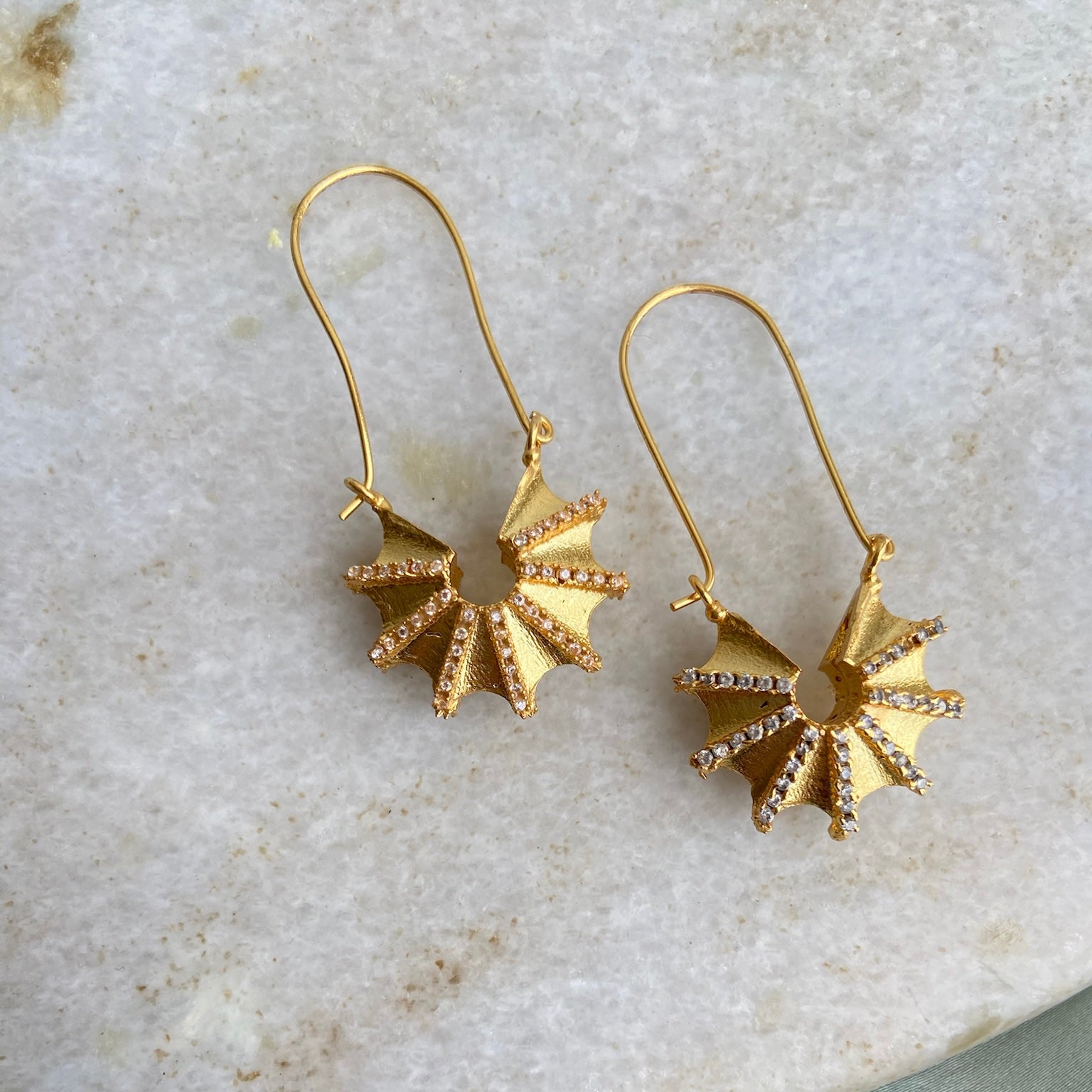 Crafted with care, these earrings feature a designer look that is sure to catch the eye. The CZ stones add a touch of glamour and sparkle, while the 18kt gold plating gives them a luxurious and elegant look.