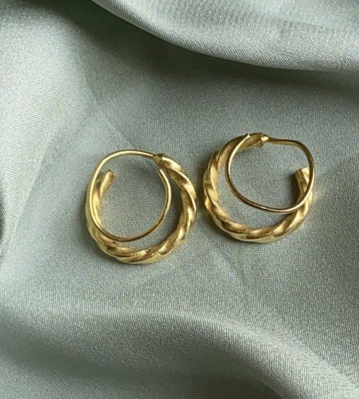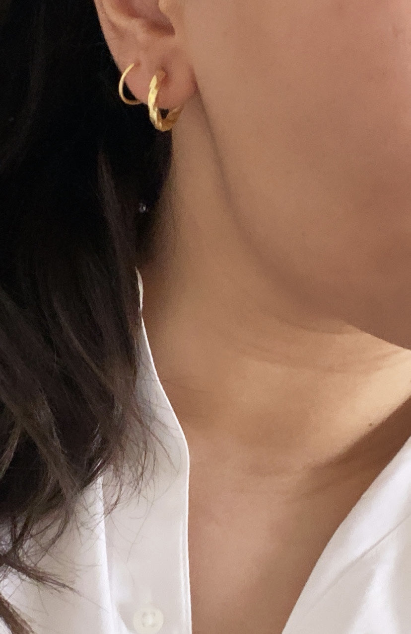 Always wanted double piercing but never got one? Our imitation twisted double piercing are for you. YES, you heard it right no need to get second piercing.These give you an illusion of second hoops. They're perfect for you everyday look. They're made in brass, plated in 18kt gold.