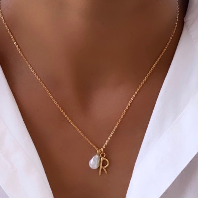 A jewel extraordinaire, this necklace is a millennial essential. Handpicked baroque pearl is stringed with your initial of choice through a delicate gold plated chain, making it appropriate for everyday and night occasions.