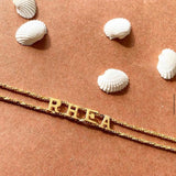 Chain your name to your hand with the plain name bracelet. The letters are securely attached with 2 chains that are adjustable, lightweight and comfortable for movement.