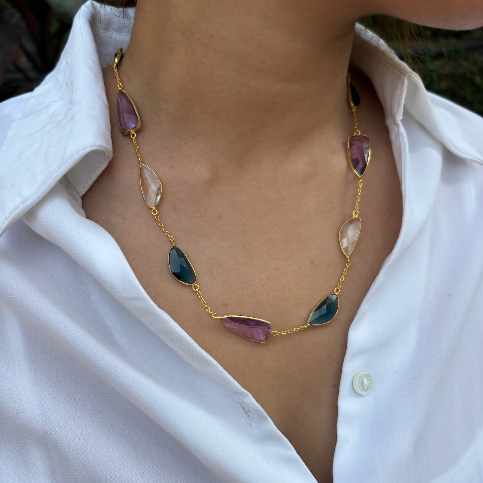 Handmade with care by skilled artisans in Jaipur, this ethically sourced necklace blends contemporary design with age-old craftsmanship. Whether worn solo or layered for added drama, the Prism Link Necklace is designed to elevate any look with effortless elegance.