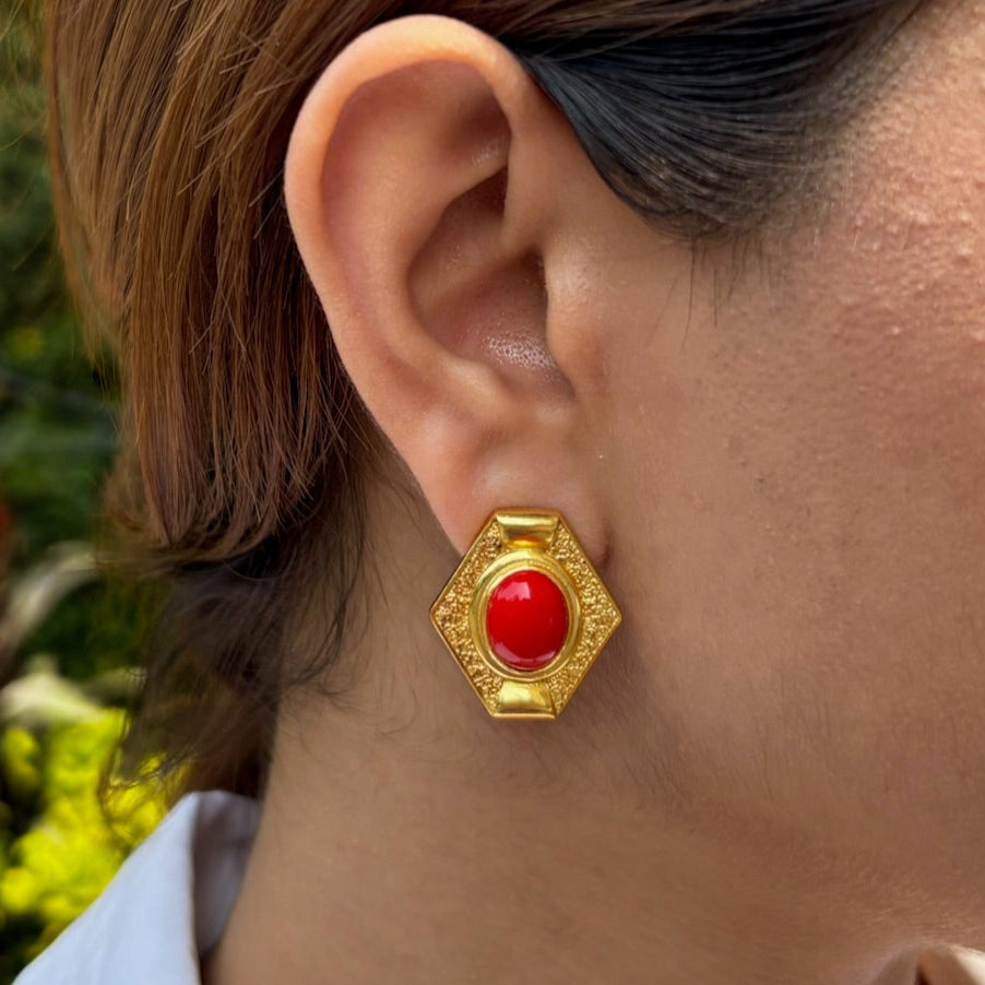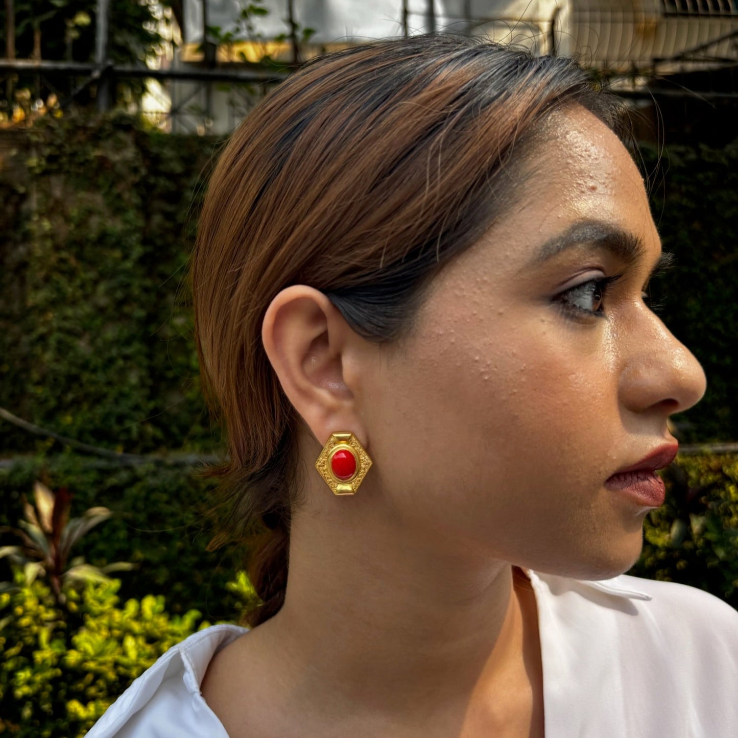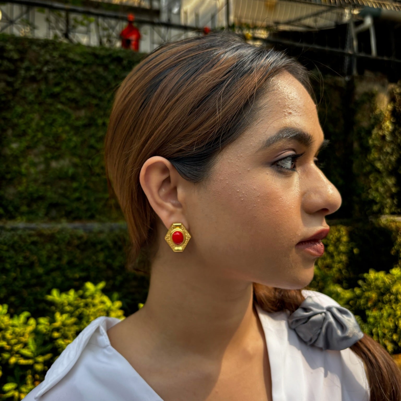 SCARLET HEX EARRING – Bold Geometry, Timeless Glamour