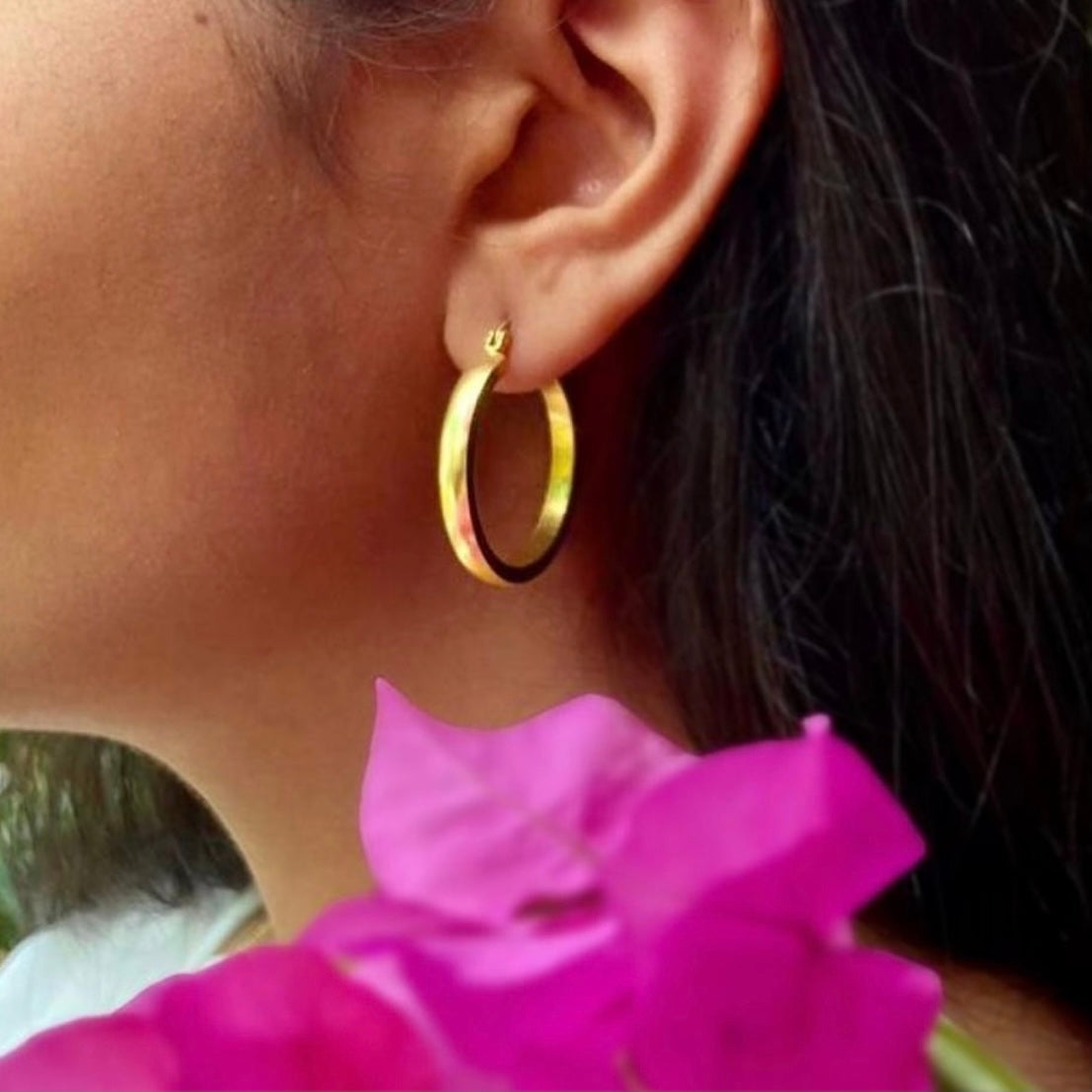 A simple pair of hoops so versatile, we don’t have any styling suggestions! Lightweight and easy to wear for long hours, these gold-plated earrings are the perfect everyday jewelry