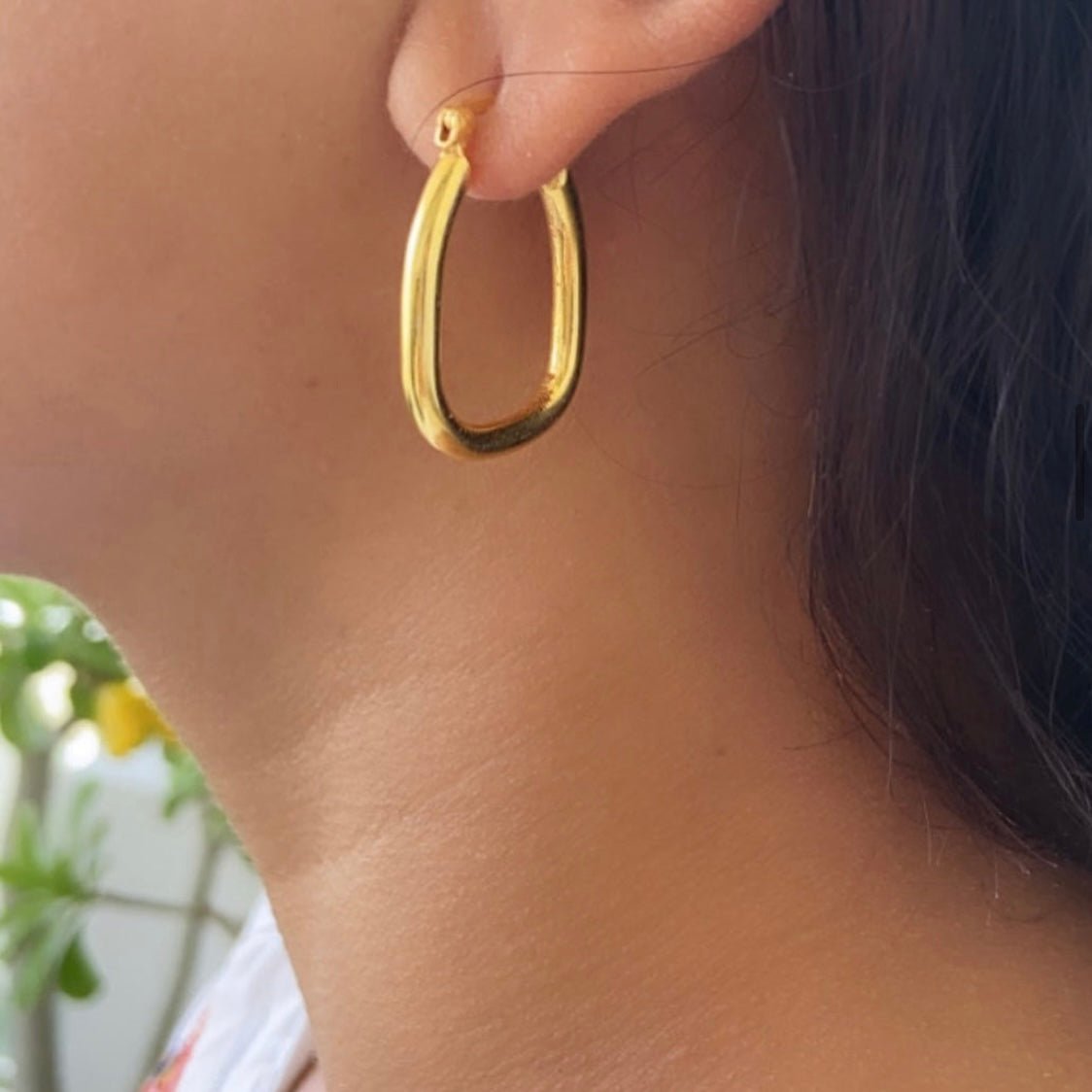 Stunning hoops in 3 colors and yes, you need all three. Made with gold plated brass, these lovely hoops are minimalistic in their contemporary design