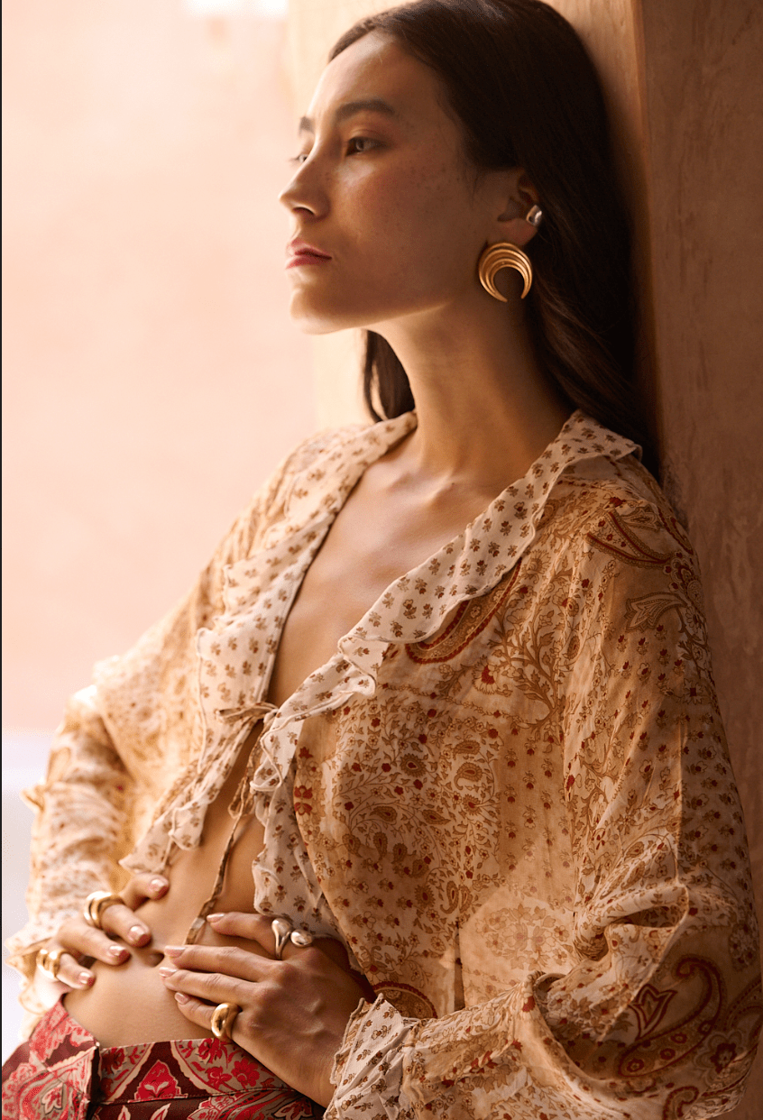 Made with high-quality brass, these earrings are plated with 18kt gold, giving them a luxurious and elegant look. The lightweight design also makes them comfortable to wear, despite their size.