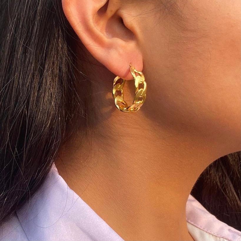 Invest in the Chain Hoops – where the glamour of 24-karat gold meets contemporary design. Celebrate your individuality, radiate modern elegance, and let these chain-detailed hoops become an integral part of your style narrative, adding an urban flair to your daily fashion journey.