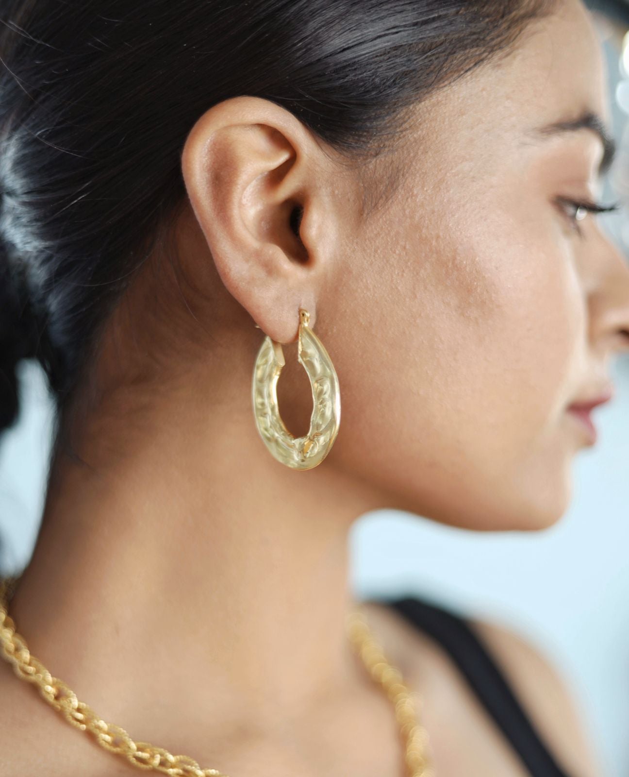 looking to upgrade your jewellery collection with pieces that are classic yet different? Look no more. Our cut hoops are gonna be the perfect addition to your collection. Hand textured, made in brass, plated in 18kt gold