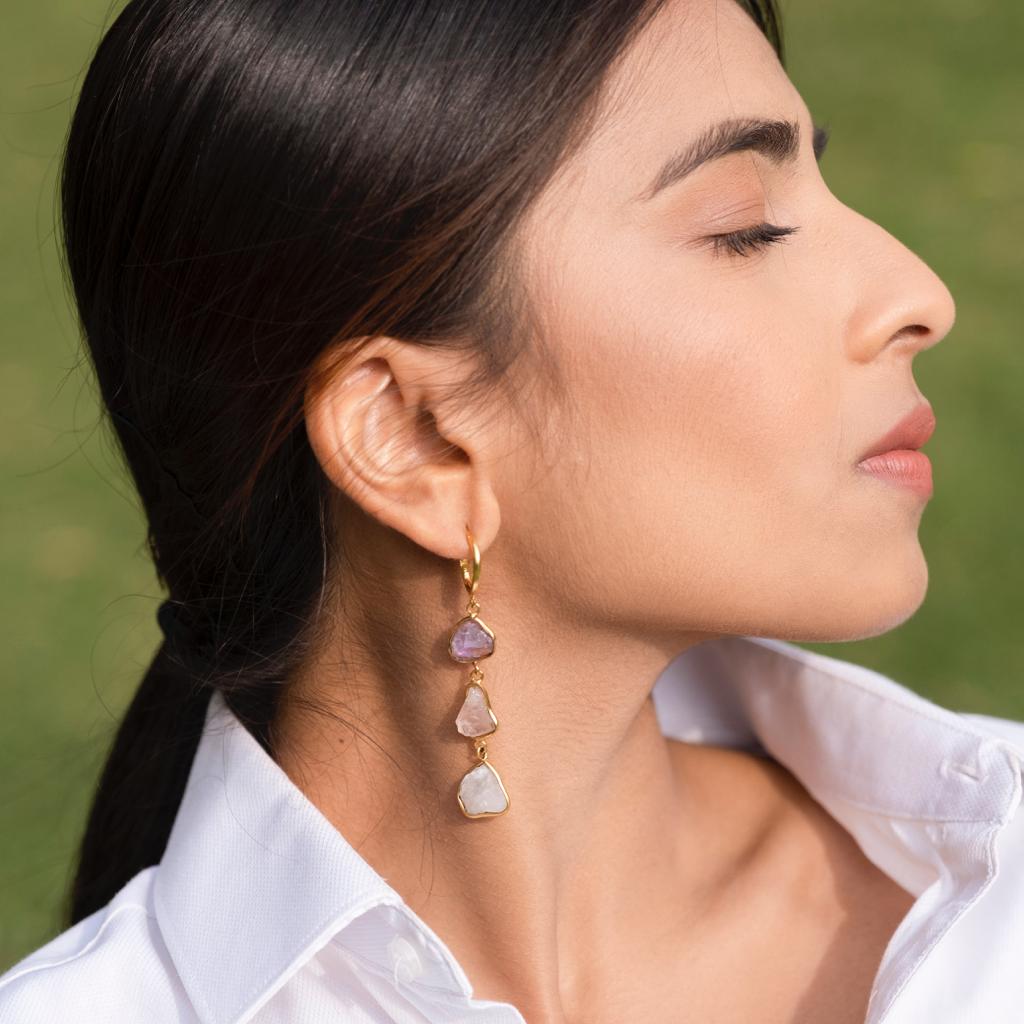 Get a bold look with our dangly gem earrings. They're a perfect choice for day or night; and call out your inner goddess.