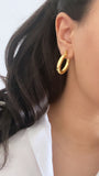 Looking for something light and classic yet stylish this summer? Our hammered 0 hoops are exactly what you're looking for. Pair them up with your formals or floral summer dresses. They're in made in brass, plated in 18kt gold.