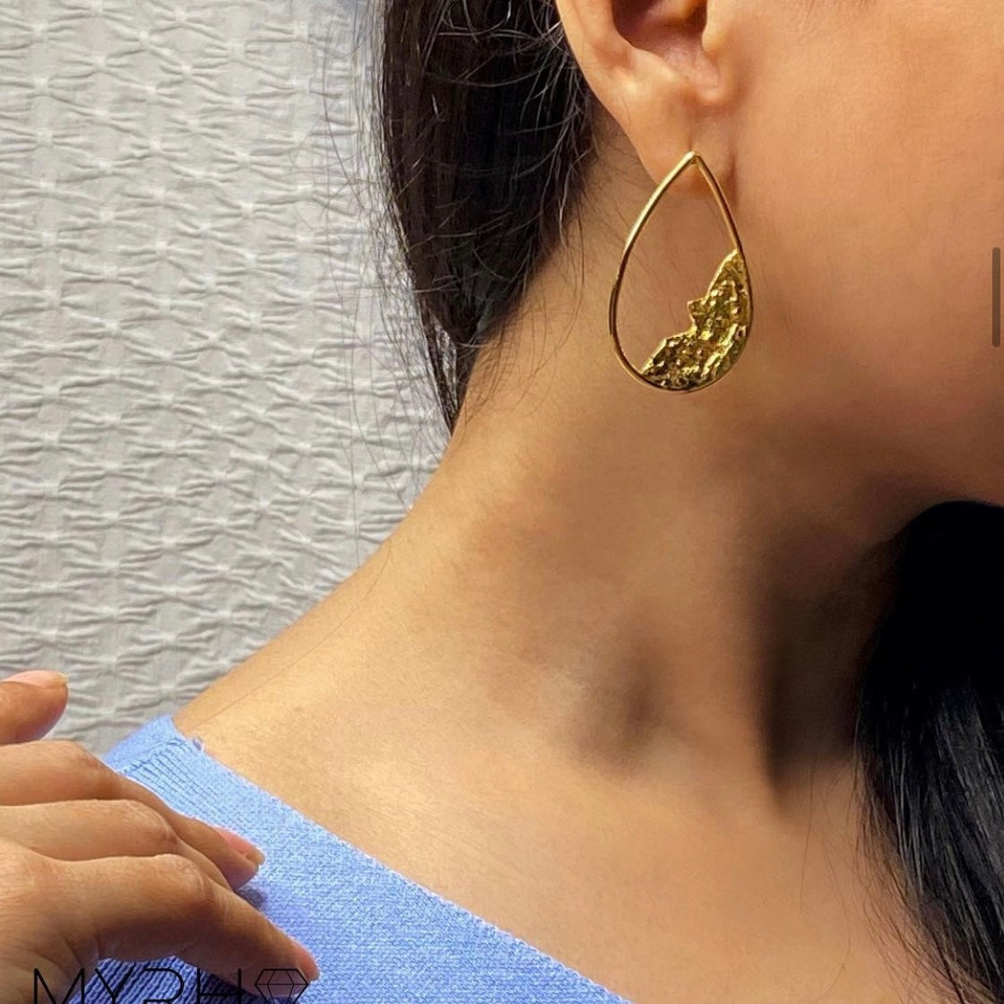 A delicate drop of elegance makes your style aura more captivating! Hand textured brass detail is plated in gold for an extra pint of charm.