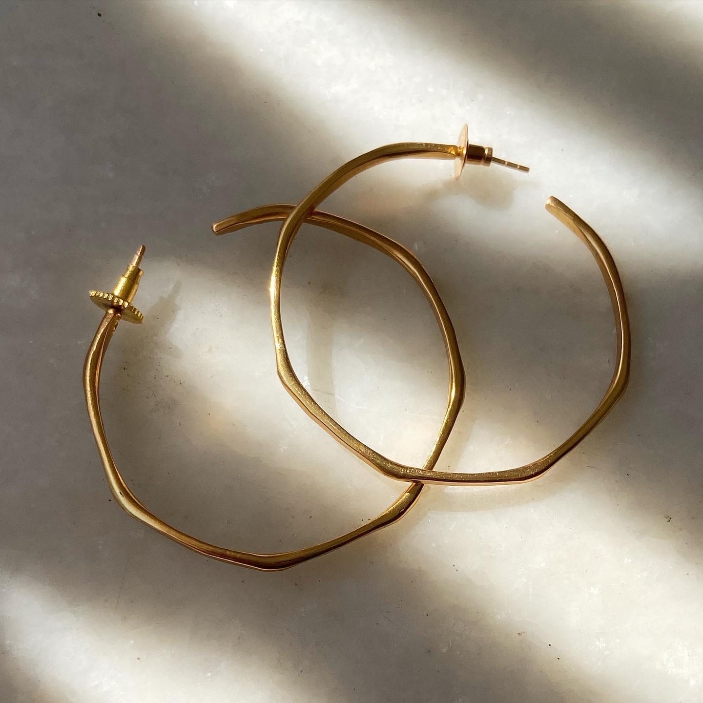 Too bored of your regular hoops? we've got you covered with our large hex hoops. Perfect addition to your jewelry collection. you can take these pair from day to night. They're made in brass, plated in 18kt gold.