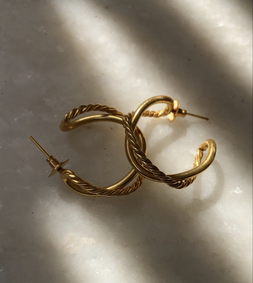 Looking for something different, yet something that would go with literally everything? we've got you covered with our mini tangled hoops. These are beautifully handcrafted in brass, plated in 18kt gold. They're perfect for when you want to stand out but don't want to experiment too much with your style. These are a must have!!