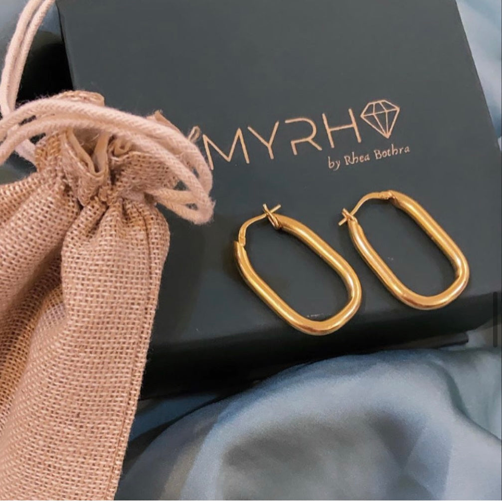 Nothing works better than a classic pair of good o’ hoops. The sleek design in gold plated brass is available in 3 colors, making it a wonderful wardrobe staple.