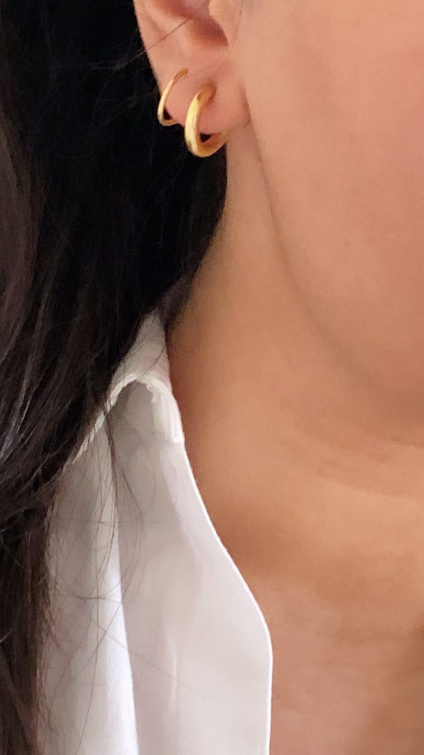 Always wanted double piercing but never got one? Our imitation plain double piercing huggies are for you. YES, you heard it right no need to get second piercing.These give you an illusion of second hoops. They’re perfect for you everyday minimal look. They’re made in brass, plated in 18kt gold.