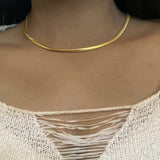 The chain lies and adorns your neck like the graceful movement of a snake. Wear it with an open neck top to let the necklace work its regal charm