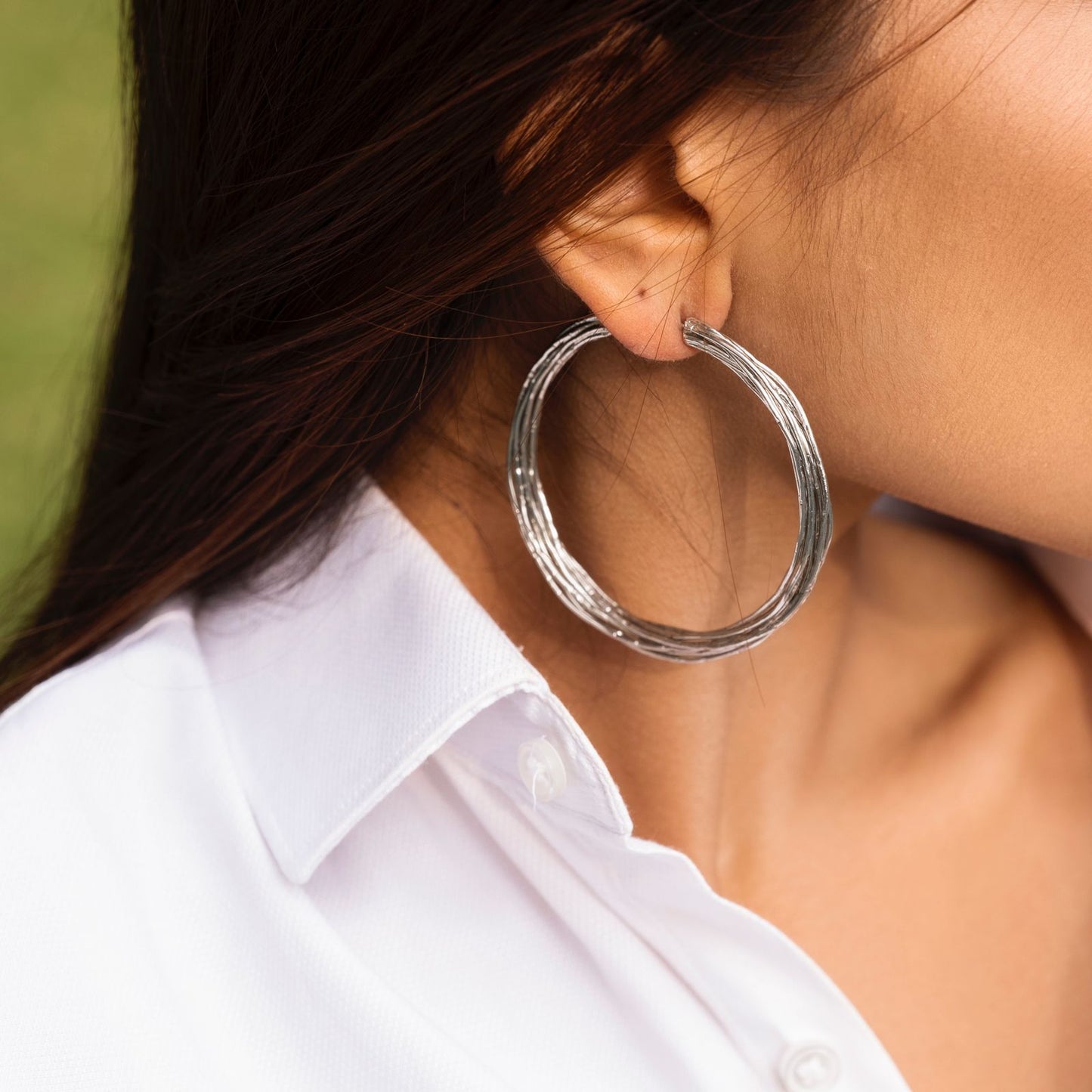 Taar hoops are a perfect accent to any outfit, whether it's a work dress, pair of jeans, or wedding ensemble. It is hand-made with brass wires one by one by our fine artisans - so the perfect amount of desi is added to the look. The earrings come in three sizes, and go with any skin tone.