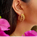 Suit your extra style with this unique triple twist hoops. Made with brass and plated with gold, be sure that the admiration gaze will be on you.
