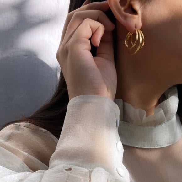 our triple hexagon hoops are perfect for summer brunches to easy breezy date nights. these hand crafted baubles are made in brass and dipped in 18kt gold with e-coating. Pair up these with cute floral dresses for brunches or a classic black dress for dates.