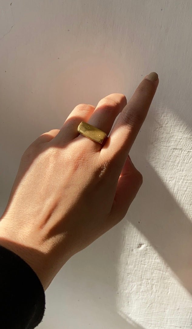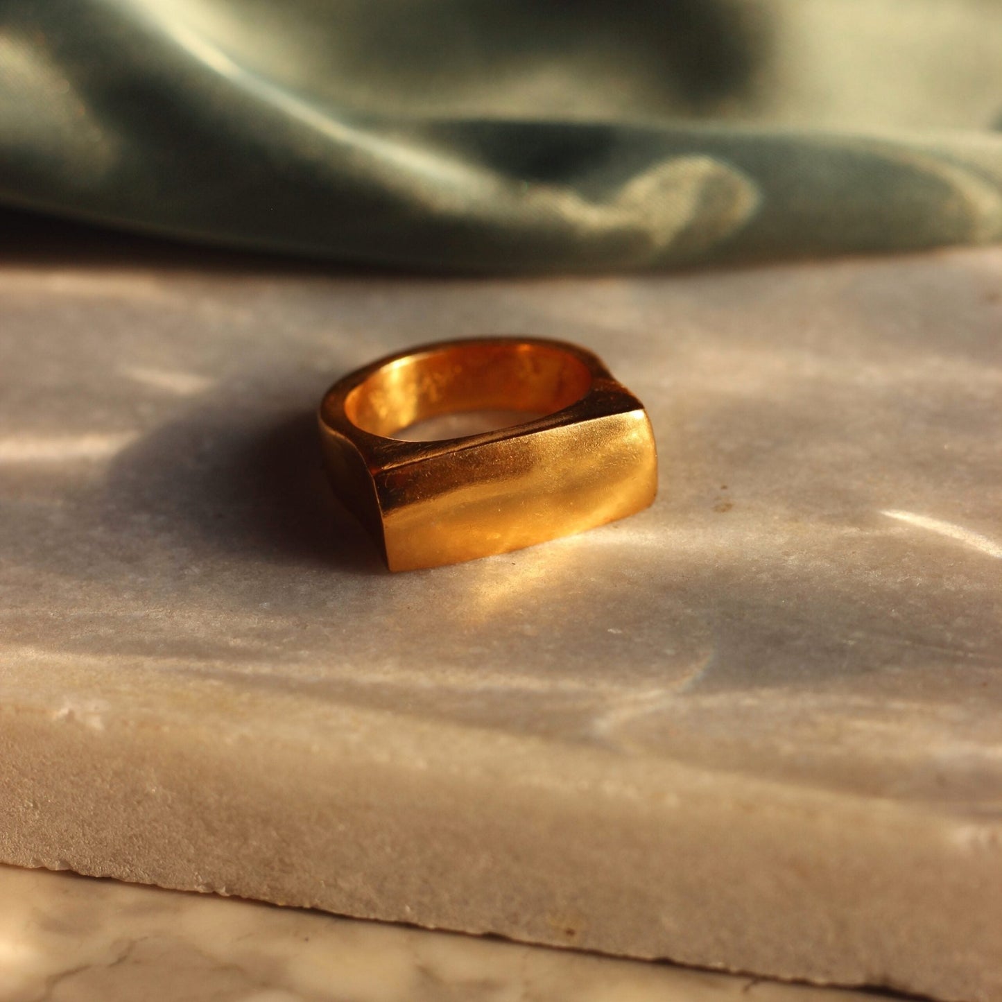 Crafted with love, plated in gold. This bar signet ring is all set to make a statement. Pair with a plain white tee or classic black dress!
