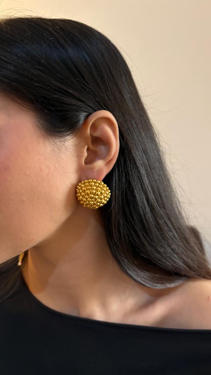 Big on impact, light on the ear. We have crafted these studs from our signature BR-10 Casting Brass, ensuring they have the luxurious look of solid gold without the heavy weight. They are finished with premium 22-Kt Gold Electroplating, providing a deep, warm luster that highlights every individual bead in the design.