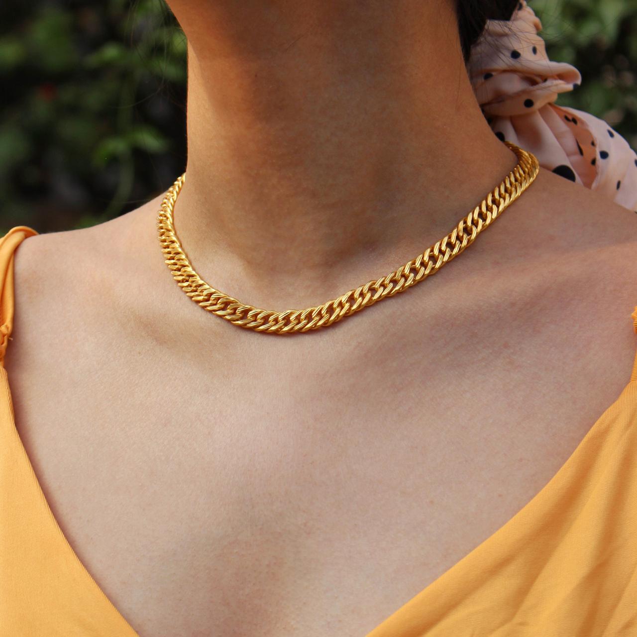 This chain should be a staple in every wardrobe. A classic, timeless necklace. This beauty will literally amp up any outfit from day to night. Made in brass plated in gold.