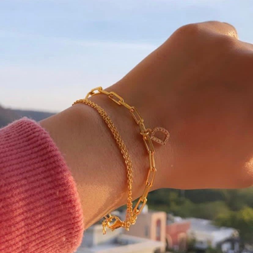 Add a letter of your choice to our delicate chain bracelet. The dainty trinket adds a flare of softness to your look, we recommend wearing it with a summer dress or a flowy skirt.
