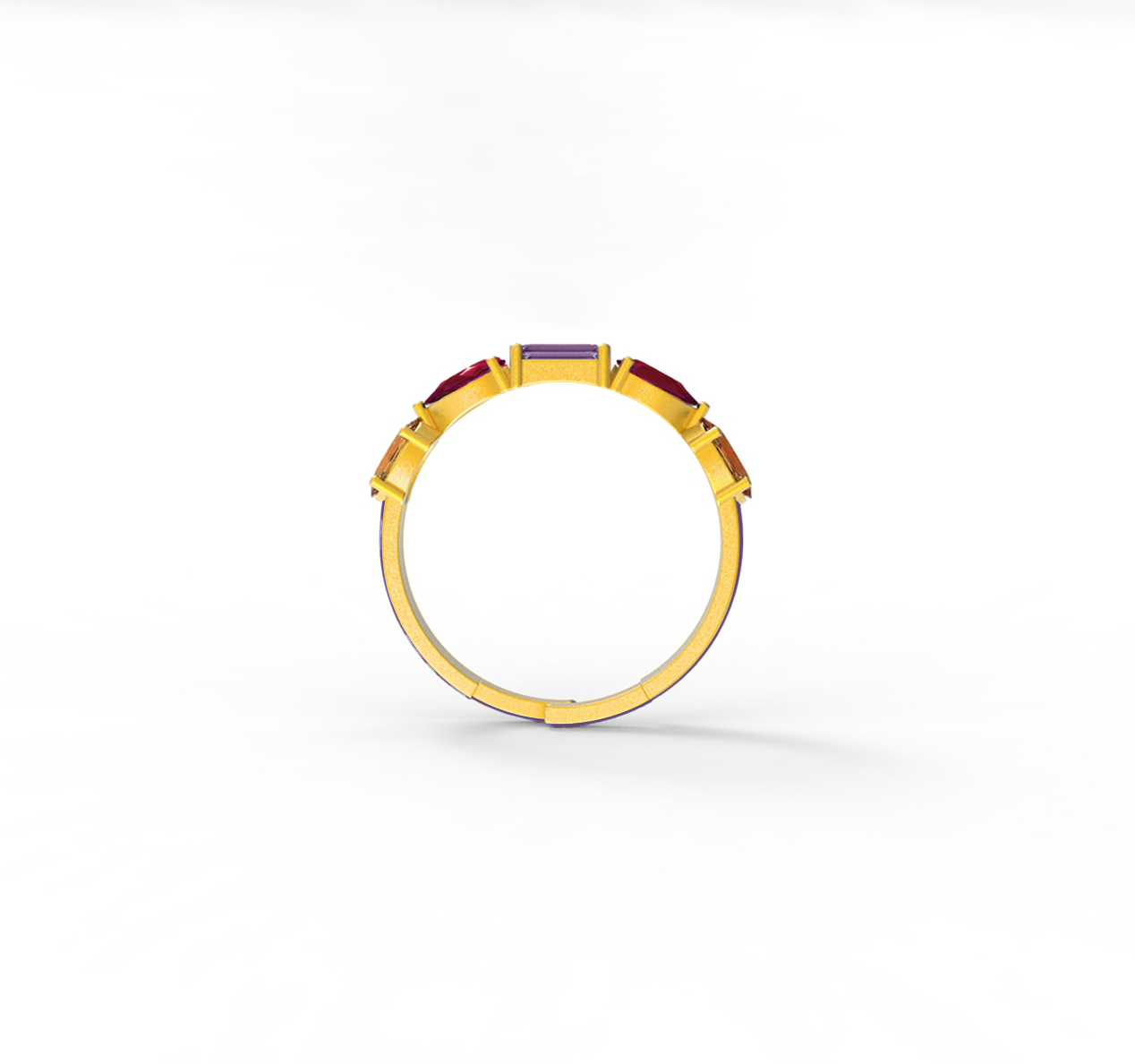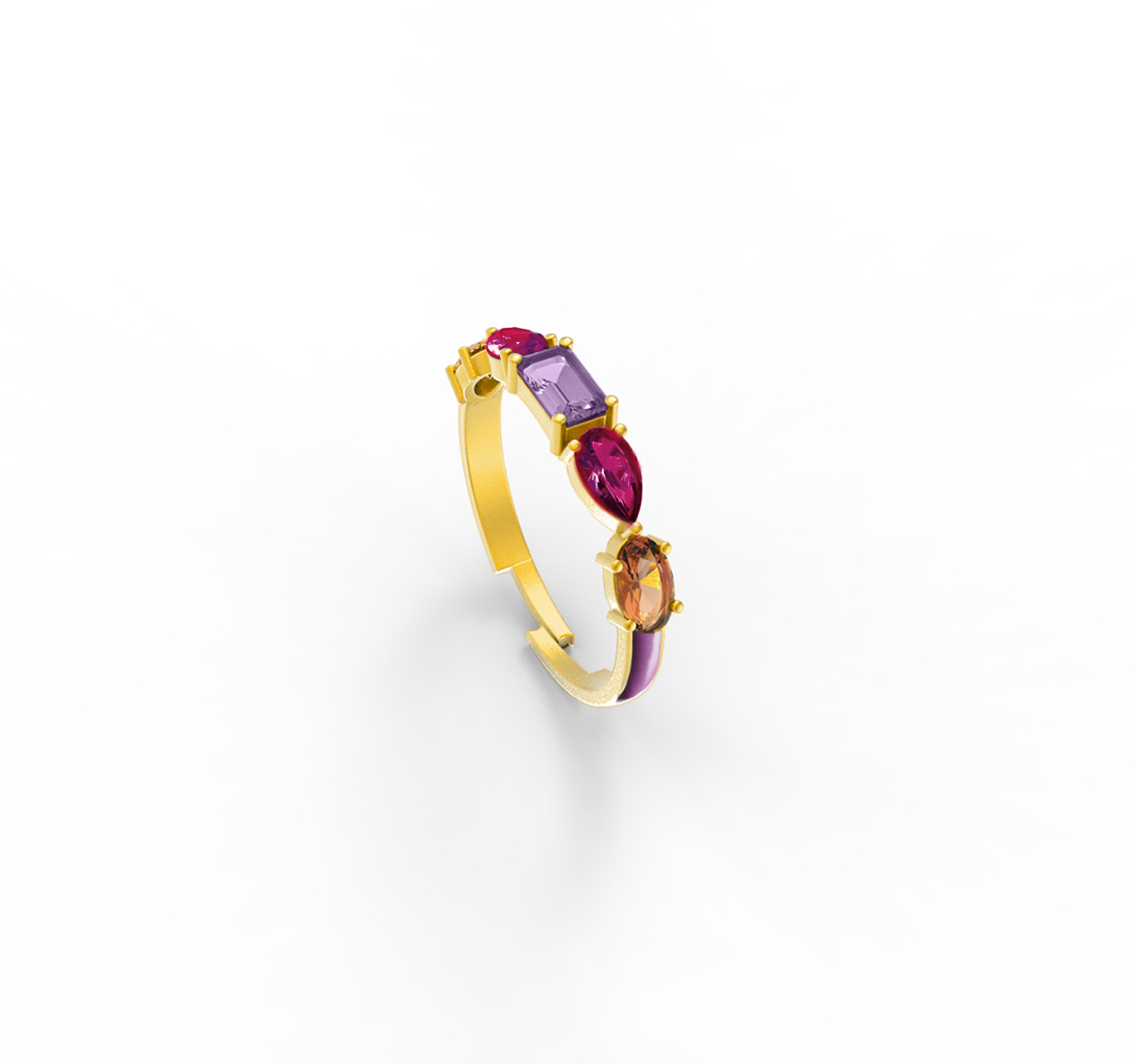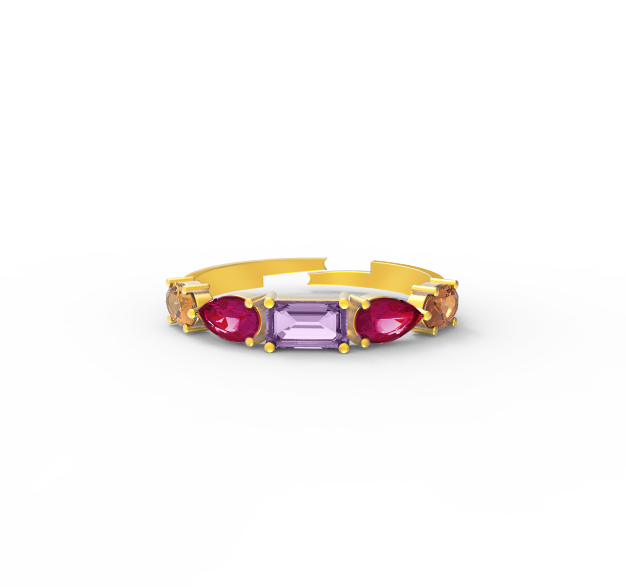 These vibrant and eye-catching rings are crafted from premium brass, coated with 22kt gold plating for a luxurious finish. Each ring features a delicate row of multicolored gemstones, creating a stunning rainbow effect that adds a playful yet elegant touch to any outfit. The combination of rich jewel tones and gold creates a dazzling contrast, perfect for making a bold statement. With a protective E-coating, these rings are designed to maintain their shine and resist tarnishing, ensuring durability. Wear them alone for a pop of color or stack them for a bolder look, making these rings versatile for any occasion.